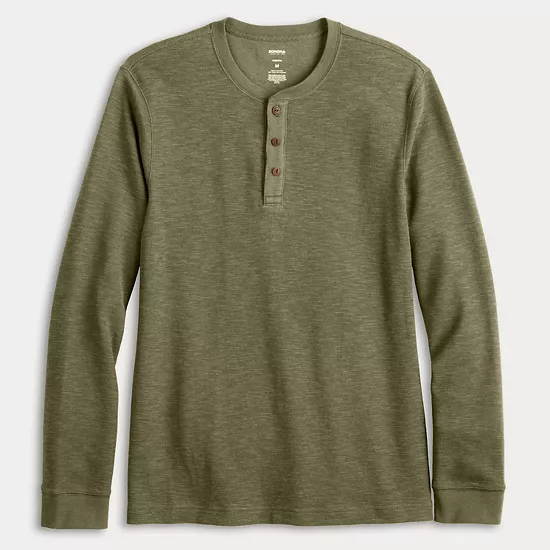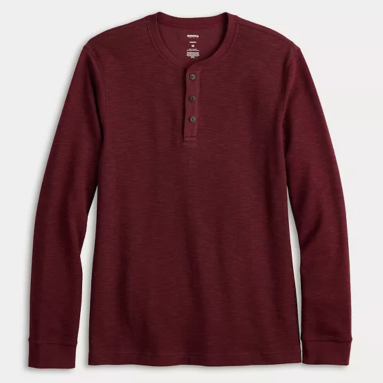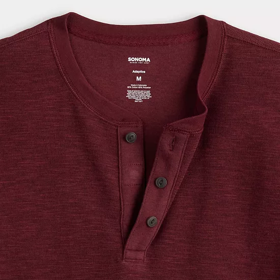 Embrace effortless style with the Sonoma Goods For Life long sleeve henley tee, designed for versatility and comfort. Its classic fit and buttoned placket make it perfect for layering or wearing on its own, making it an essential addition to your casual wardrobe.