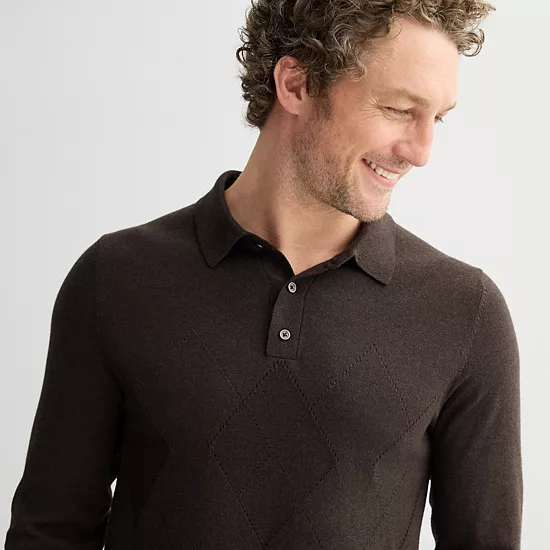 Elevate his casual look with the timeless charm of Sonoma Goods For Life®. This argyle sweater polo offers a refined fit, perfect for layering under his favorite jackets or pairing with chinos for a smart weekend outing or workday attire.