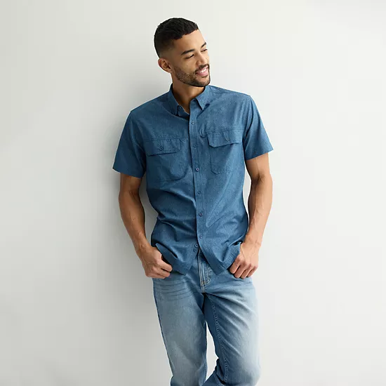This men’s Sonoma Goods For Life® Outdoor short sleeve button-down shirt was designed to keep up with you, no matter where your day takes you.