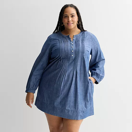 Embrace effortless elegance with this captivating long sleeve dress from Sonoma Goods For Life. The flattering silhouette, complete with a Henley neckline and two side pockets, offers both style and function, making it perfect for any casual outing or a cozy gathering with friends.
