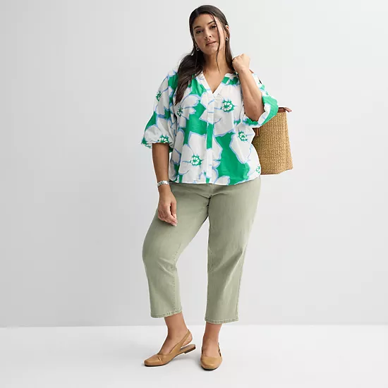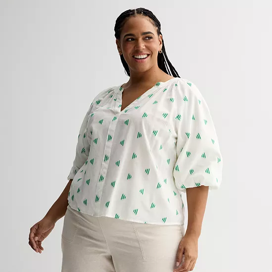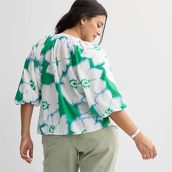 Elevate your wardrobe with this plus size Sonoma Goods For Life shirred Y-neck balloon sleeve blouse.