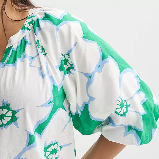 - 3/4-length balloon sleeves