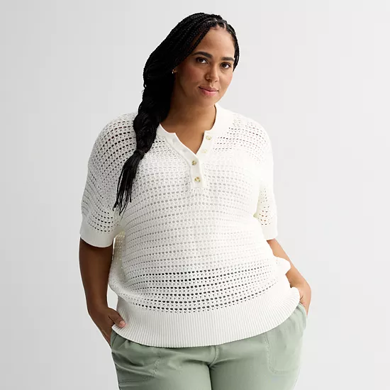 Give your wardrobe a fresh new look with this women’s Sonoma Goods For Life short sleeve henley sweater.