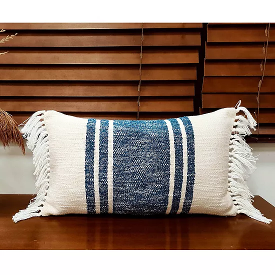 Add a fresh and stylish touch to your home decor with this center stripe fringe throw pillow from Sonoma Goods For Life.