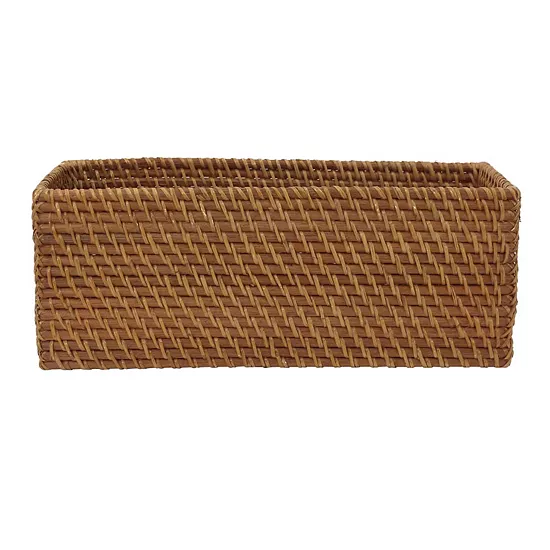 Decorate and organize your bathroom space in style with this chic woven rattan tank topper by Sonoma Goods For Life.