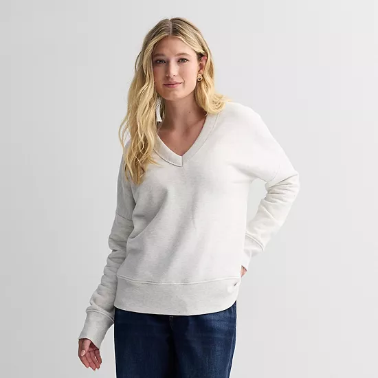 Stay cozy wearing this women’s Sonoma Goods For Life relaxed fleece V-neck sweatshirt.