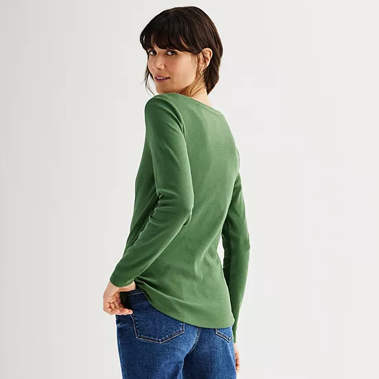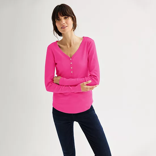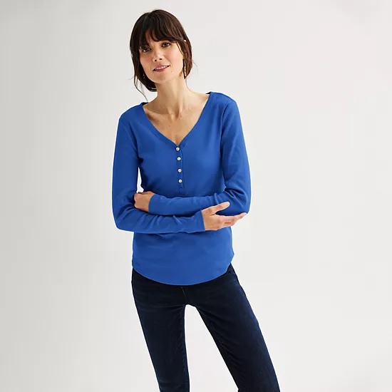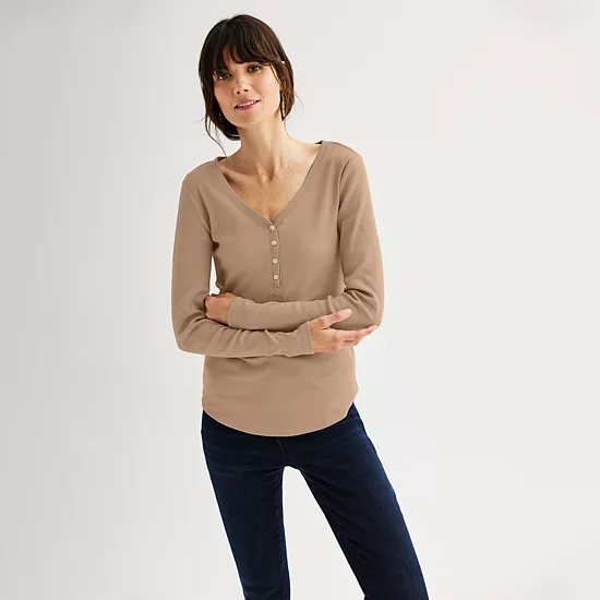 Enjoy effortless style with this Women’s Sonoma Goods For Life® Rib Long Sleeve Henley.