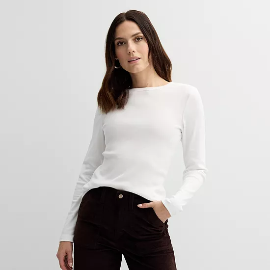 Enjoy effortless style with this Women’s Sonoma Goods For Life® Rib Slim Fit Long Sleeve Tee.