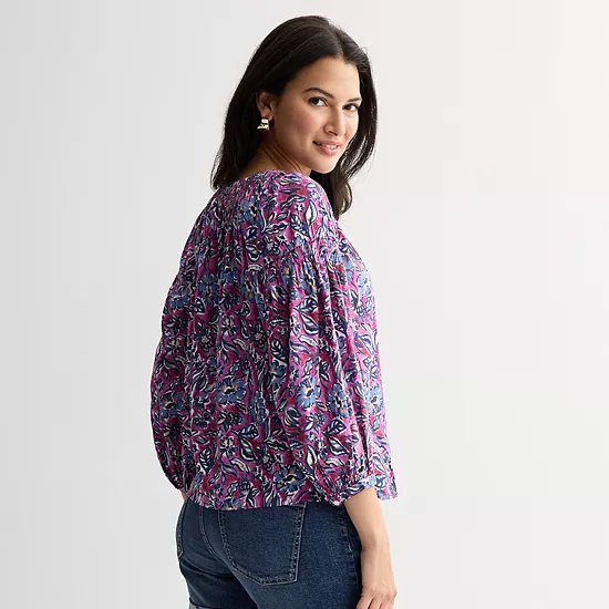 Elevate your casual wardrobe with this stylish smocked quarter sleeve henley top from Sonoma Goods For Life. Its relaxed fit and flattering raglan sleeves make it perfect for effortless layering, while the sustainable cotton fabric ensures you feel as good as you look, making it a versatile choice for any occasion.